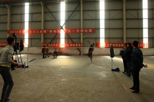 為慶祝五一國(guó)際勞動(dòng)節(jié),豐富物產(chǎn)北川工業(yè)園區(qū)職工業(yè)余文化生活,陶冶職工情操,提高職工整體素質(zhì),創(chuàng)建和諧班組,推動(dòng)企業(yè)文化建設(shè),激勵(lì)全員職工積極投身生產(chǎn)經(jīng)營(yíng)和項(xiàng)目建設(shè),推動(dòng)公司"兩提一降"工作,從2014年4月21日開(kāi)始了物產(chǎn)北川工業(yè)園區(qū)"移動(dòng)杯"慶五一文體系列比賽活動(dòng)。