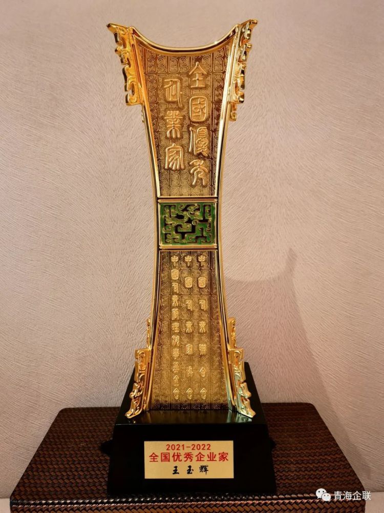 與會(huì)領(lǐng)導(dǎo)為青海物產(chǎn)集團(tuán)黨委書記、董事長(zhǎng)王玉輝頒發(fā)獎(jiǎng)杯