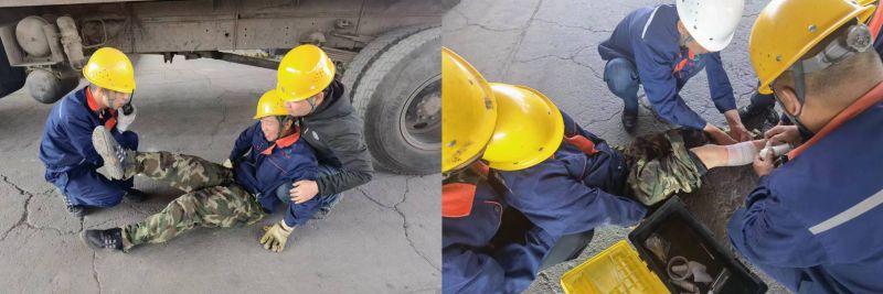 機(jī)械傷害是安全生產(chǎn)人身傷亡事故中最常見的事故類型,組織職工開展應(yīng)急演練,是避免和減少此類事故發(fā)生的重要途徑。為確保此次演練取得預(yù)期效果,配送公司裝卸作業(yè)部提前制定方案,成立安全小組,明確職責(zé)分工,并組織參演人員進(jìn)行演練前培訓(xùn),細(xì)化各環(huán)節(jié)步驟。此次演練模擬作業(yè)人員在庫區(qū)作業(yè)吊裝貨物時(shí),因自身麻痹大意導(dǎo)致被貨物撞擊致傷,造成機(jī)械傷害的場景。在警戒組、應(yīng)急救援組、檢查組、后勤保障組等各參演人員的密切協(xié)作下,圓滿完成了此次演練任務(wù)。