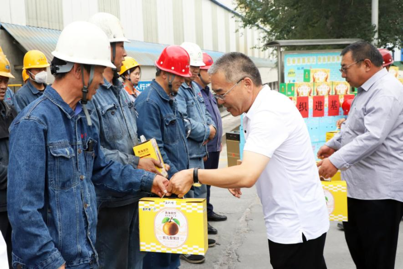 夏日送清涼,點(diǎn)滴沁人心。8月14日,青海省總工會(huì)紀(jì)檢監(jiān)察組組長(zhǎng)祁維正,省總工會(huì)二級(jí)巡視員張文輝等一行3人蒞臨青海物產(chǎn)工業(yè)投資有限公司開(kāi)展“夏送清涼”慰問(wèn)活動(dòng),為夏日高溫下的一線職工送去組織關(guān)懷。集團(tuán)副總經(jīng)理、工會(huì)主席張?jiān)手业认嚓P(guān)人員陪同。