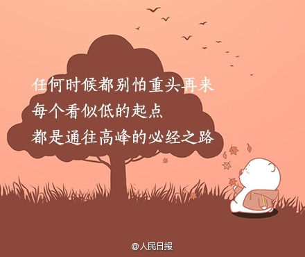 任何時(shí)候都別怕重來,每個看似低的起點(diǎn),都是通往高峰的必經(jīng)之路。你不努力,誰又能替你成長?來源:新浪微博@人民日報(bào)