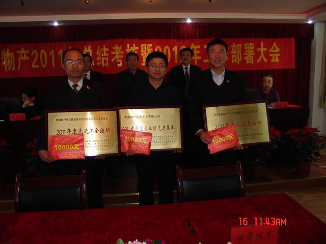 1月16日,集團(tuán)召開2011年工作總結(jié)考核暨2012年工作部署大會,省國資委領(lǐng)導(dǎo)蒞臨大會、集團(tuán)領(lǐng)導(dǎo)、各公司領(lǐng)導(dǎo)班子、總部全體員工及2011年度先進(jìn)個人參加了會議。集團(tuán)總經(jīng)理王玉輝作了題為《奮楫圖治夯實基,敦行致遠(yuǎn)續(xù)新篇,在"十二五"科學(xué)發(fā)展的大道上闊步前進(jìn)》的工作報告,黨委書記白家林作了題為《融入中心創(chuàng)先進(jìn),提升發(fā)展?fàn)幭蠕h,大力推進(jìn)青海物產(chǎn)集團(tuán)科學(xué)發(fā)展新跨越》的黨委工作報告.會上通報了集團(tuán)2011年完成省國資委下達(dá)的經(jīng)營考核指標(biāo)情況及各公司主要工作成績和不足,對2012年工作任務(wù)及黨建工作進(jìn)行了安排部署。