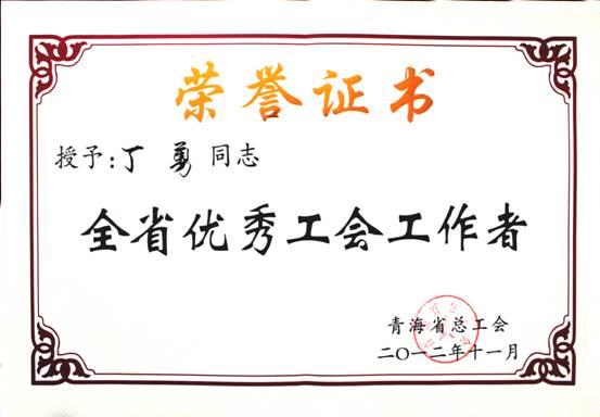 在2012年11月23日召開的青海省工會(huì)第13次代表大會(huì)上,省總工會(huì)對(duì)全省優(yōu)秀個(gè)人、模范集體進(jìn)行了表彰。集團(tuán)總經(jīng)理王玉輝同志榮獲"全省職工之友"榮譽(yù)稱號(hào);青海物產(chǎn)物資配送有限責(zé)任公司工會(huì)榮獲"全省模范職工之家"榮譽(yù)稱號(hào);馬軍同志榮獲"全省優(yōu)秀工會(huì)積極分子"榮譽(yù)稱號(hào);丁勇同志榮獲"全省優(yōu)秀工會(huì)工作者"榮譽(yù)稱號(hào)。