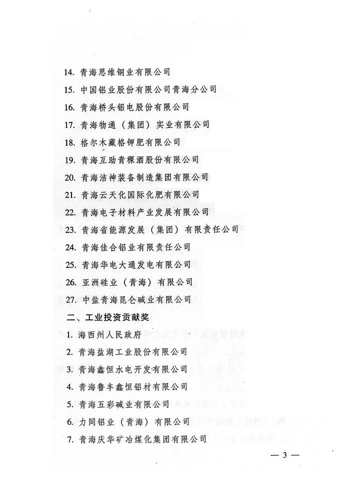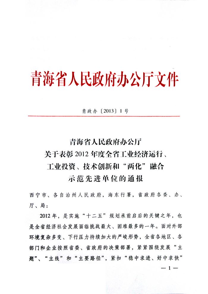 集團榮獲2012年度青海省人民政府“工業(yè)投資貢獻獎”