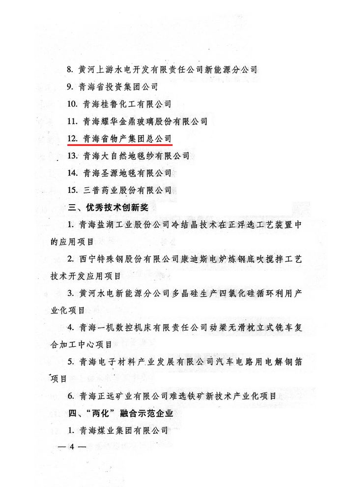 2012年,青海省物產(chǎn)集團總公司在省委、省政府及省國資委的大力支持和領(lǐng)導(dǎo)下,集團總公司按照全省工業(yè)經(jīng)濟總體部署和要求,著力推進工業(yè)項目建設(shè),榮獲"2012年度工業(yè)投資貢獻獎"。