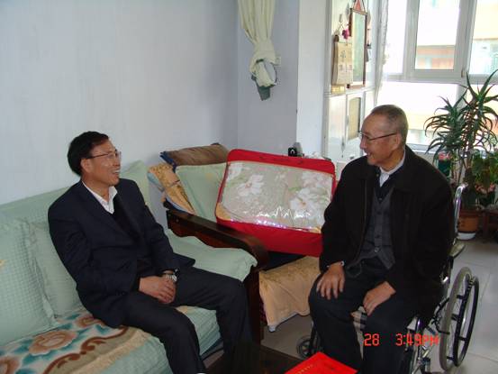 2013年1月28日,春節(jié)來臨之際,省委組織部王志明副部長在省國資委黨委副書記毛占彪、物產(chǎn)集團領導白家林、王仁芬的陪同下,走訪慰問了集團系統(tǒng)生活困難老黨員肖振東。王志明副部長親切地詢問肖振東的身體狀況、生活和家庭情況,發(fā)放了慰問金和慰問品,并希望他保重身體,愉快安度晚年。老黨員肖振東激動地表示感謝黨組織的關懷,感謝上級領導的關心!