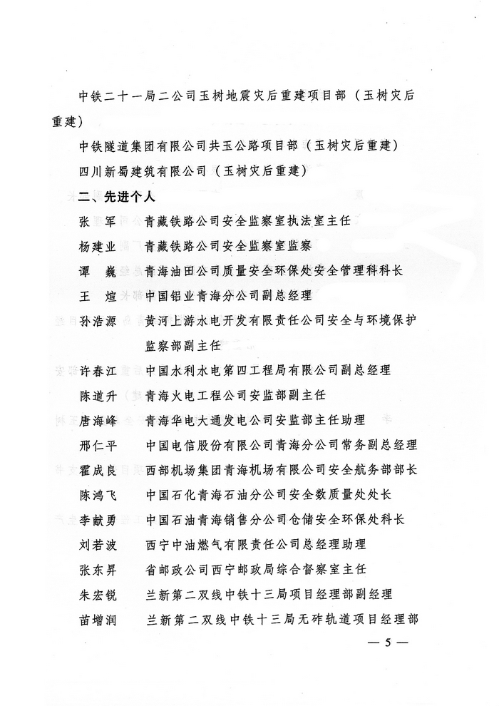 2012年,在省委、省政府的正確領(lǐng)導(dǎo)下,青海省物產(chǎn)集團(tuán)總公司認(rèn)真學(xué)習(xí)貫徹黨的十八大精神,全面貫徹落實(shí)科學(xué)發(fā)展觀,牢固樹立以人為本、安全發(fā)展的理念,深入開展"安全生產(chǎn)年"、"隱患排查治理"、"打非治違"等活動(dòng),為促進(jìn)全省安全生產(chǎn)形勢(shì)持續(xù)穩(wěn)定好轉(zhuǎn)做出了積極貢獻(xiàn)。為此,經(jīng)省政府同意,省安全生產(chǎn)委員會(huì)決定授予青海省物產(chǎn)集團(tuán)總公司"2012年度安全生產(chǎn)先進(jìn)企業(yè)"榮譽(yù)稱號(hào)。